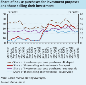 Tỉ lệ nhà đầu tư Bất động sản cho thuê giảm trong 2023, cụ thể số lượng nhà đầu tư tại Budapest giảm từ 42 xuống còn 36%, các nơi khác giảm từ 36% xuống 23%. Tại Budapest, tỷ lệ nhà đầu tư trong số những người bán bất động sản đã giảm từ 33% xuống 31% trong cùng thời kỳ và không thay đổi ở mức 24% ở các nơi khác. Với tình trạng này, cung và cầu của thị trường bất động sản được cân bằng, góp phần làm giảm giá nhà hoặc ít nhất trong thời điểm này sẽ không tăng giá.