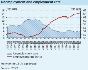 Theo ngân hàng nhà nước Hungary, tỉ lệ thất nghiệp tại quốc gia này đang ở mức rất thấp so với quốc tế, chỉ 3,9% trong tháng 12 2023 và được dự báo sẽ tiếp tục giảm trong thời gian tới, đạt mức tương đương trước đại dịch Covid vào năm 2025. Bênh cạnh đó, Thu nhập bình quân của người lao động tại các doanh nghiệp tư nhân trong quý II 2023 tăng 17,9% so với cùng kì và được dự báo sẽ tiếp tục tăng trưởng khoảng 15,6%-15,9% trong 2023, 9,5% – 10,5% trong 2024 và 6,9%-8,1% trong 2025.