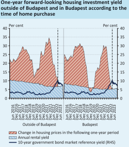 Giá nhà trung bình toàn quốc tại Hungary đã sụt giảm trong nửa cuối năm 2022 lần đầu tiên trong vòng 9 năm trở lại đây và phục hồi nhẹ từ đầu năm 2023. Phục hồi tại quý 1 2023 đạt 2.6%, quý 2 đạt 0.5% và quý 3 đặt 0.4%, tuy chưa thể bù đắp lại sự suy giảm của 6 tháng cuối năm 2022 nhưng đã đưa chỉ số giá nhà tại Hungary về vùng tăng trưởng tích cực. Giá trung bình toàn quốc Quý 2 năm 2023 giảm 0.8% so với cùng kì, nguyên nhân của Sự sụt giảm này là do thị trường nhà ở tại các vùng ngoại ô, nông thôn đã giảm đến 8,1%, tuy nhiên thủ đô Budapest và các thành phố lớn khác vẫn giữ mức tăng trưởng lần lượt là 4,9% và 1,1%.