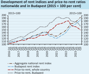Giá nhà trì trệ và giá thuê tăng đang thúc đẩy lợi suất cho thuê. Giá cho thuê đã tăng trên cả nước từ 14% đến 15% trong 2023, cụ thể vào năm 2022 giá cho thuê (so với giá trị bất động sản) tại Budapest là 5% và các nơi khác là 6.5%, đến 2023, con số này đã tăng lên lần lượt là 5,5% và 7%.